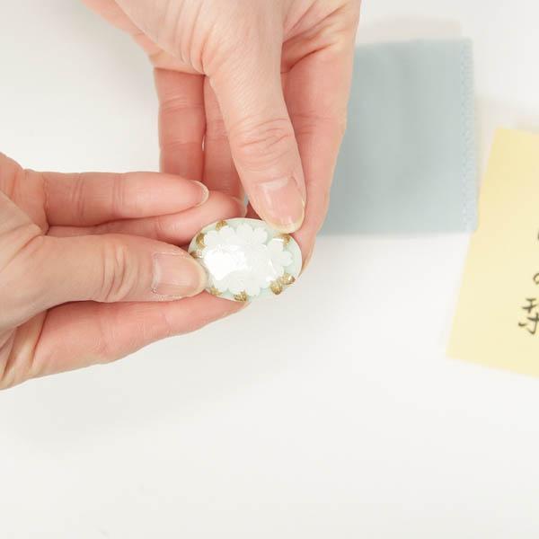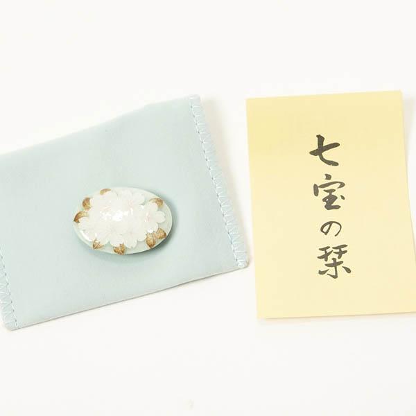 【きもの山喜】帯留 京七宝 着物用 帯のアクセントに うぐいす色 桜 保存袋付き プレゼントにも好適 お取り寄せ商品