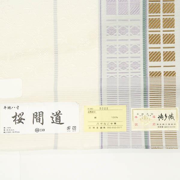 【きもの山喜】博多帯 名古屋帯 八寸なごや帯 本場筑前博多織 正絹 日本製 クリーム かがり仕立て付き