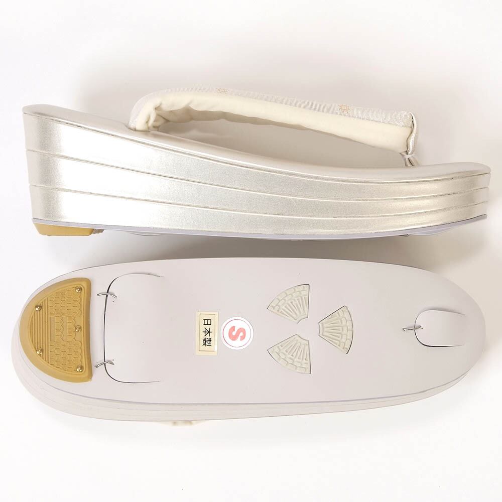 【きもの山喜】草履バッグセット Sサイズ 小さいサイズ 礼装 フォーマル 裂地 留袖 訪問着 振袖 日本製 白 シルバー