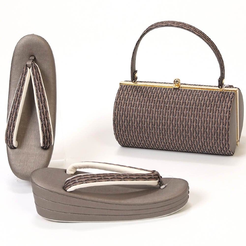 【きもの山喜】草履バッグセット フリーサイズ 高め台 裂地 成人式 卒業袴 振袖 シンプル 日本製 茶