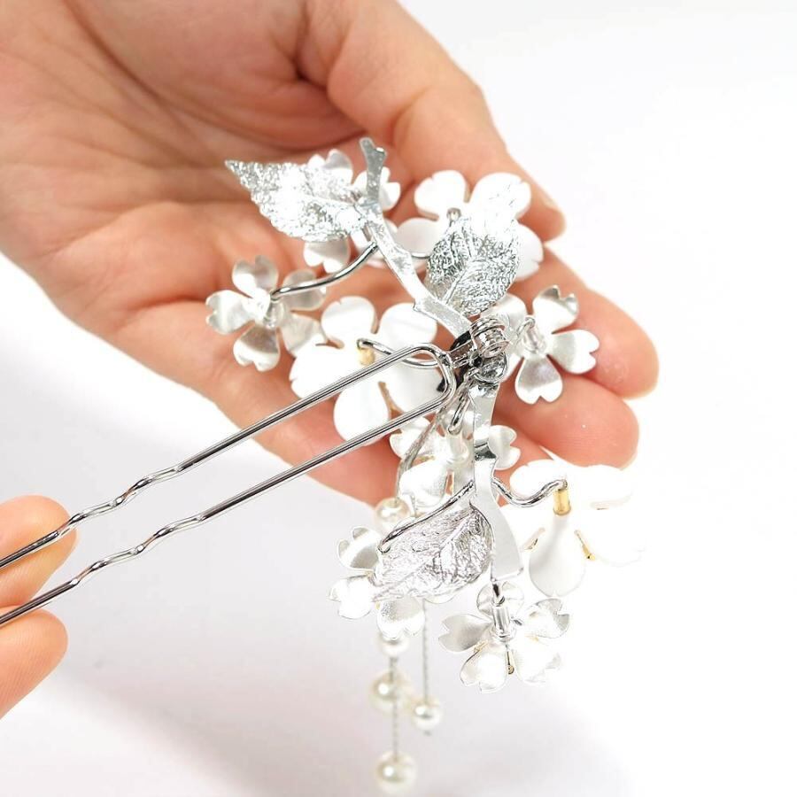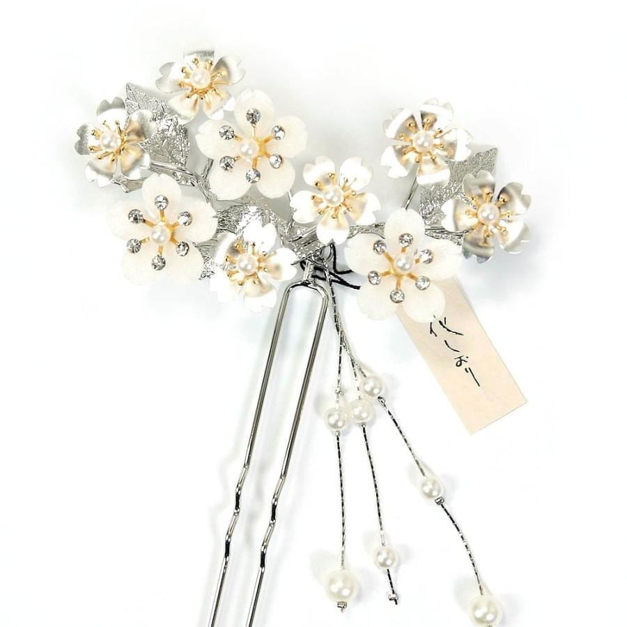【きもの山喜】かんざし 着物 髪飾り 和装 フォーマル 礼装 さくら 大きめかんざし 白