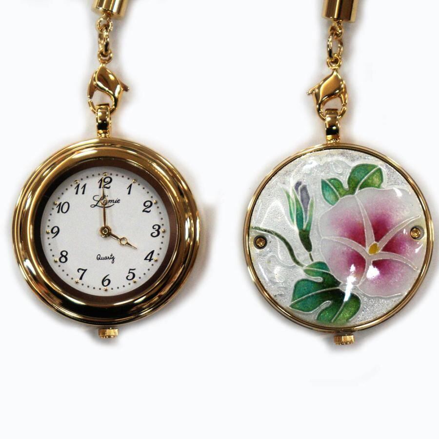 【きもの山喜】懐中時計 国産 七宝 あさがお(白)四季彩シリーズ ギフト 化粧箱入り【記念品・お祝い・ギフトに最適】【お取り寄せ商品】