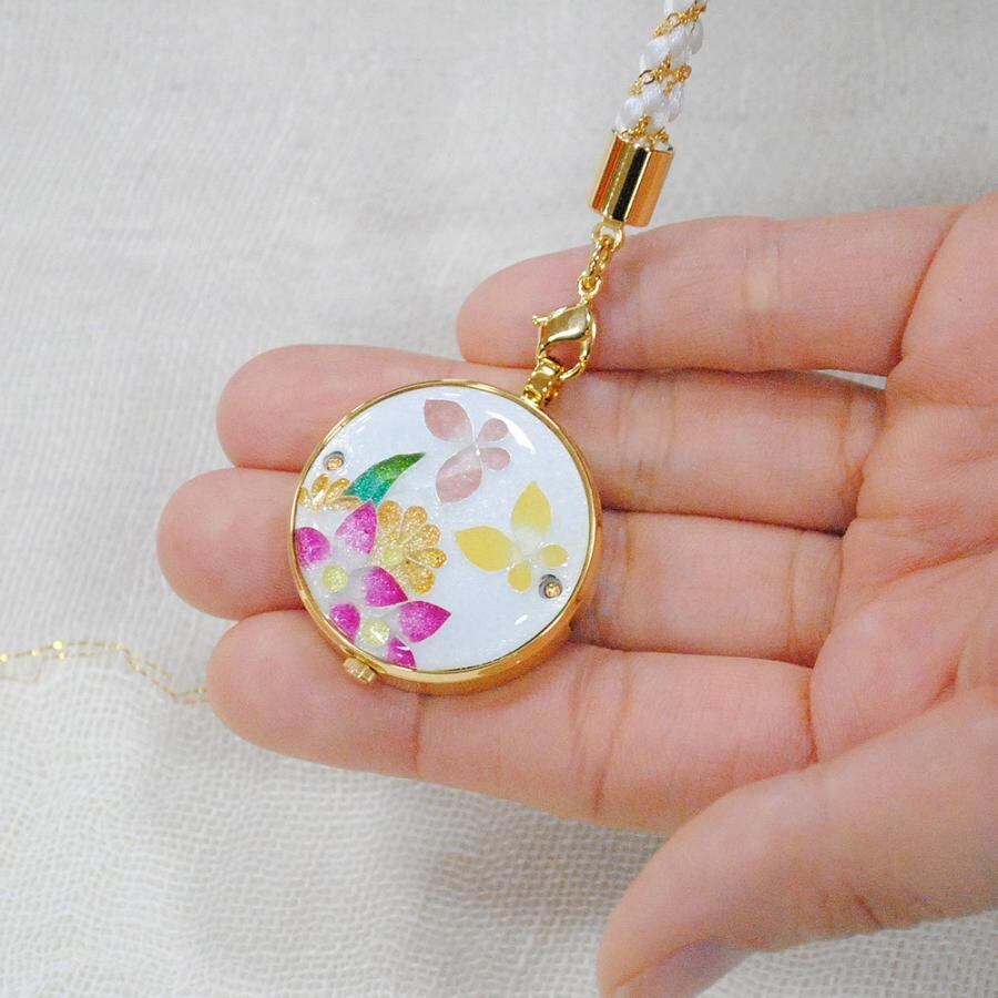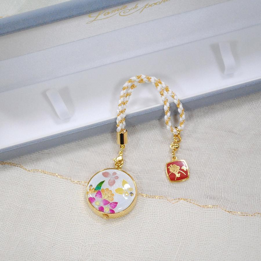 【きもの山喜】懐中時計 国産 七宝 花と蝶(白)花の香りシリーズ ギフト 化粧箱入り【記念品・お祝い・ギフトに最適】【お取り寄せ商品】