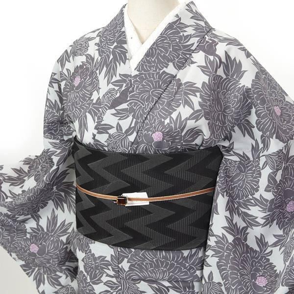 【きもの山喜】浴衣 レディース 撫松庵 ブランド 単品 東レ セオ アルファ さらっと涼しい 日本製 Mサイズ 猫牡丹 グレー