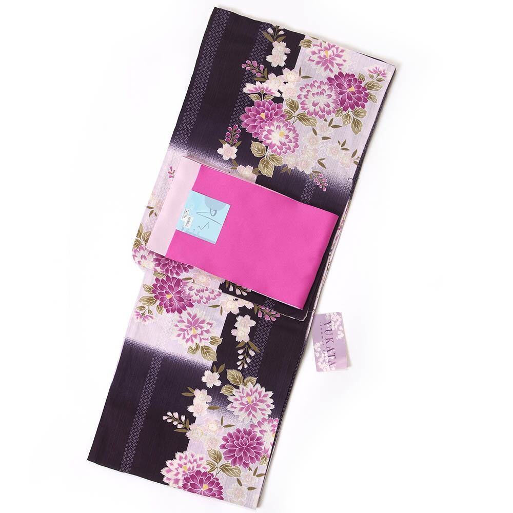 【きもの山喜】浴衣 レディース 2点セット ゆかた+半巾帯 綿100% 涼しい 天然繊維 変わり織 桜 紫