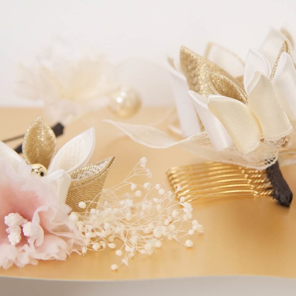 【きもの山喜】髪飾り 振袖 成人式 袴 3個セット シャルマン つまみ 水引 ドライフラワー 可愛い おしゃれ 日本製 白 ゴールド
