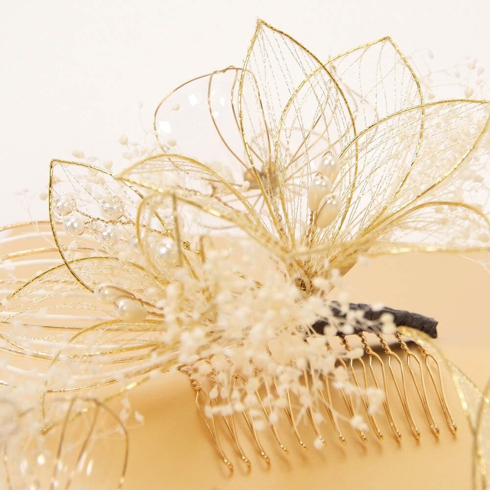 【きもの山喜】髪飾り 振袖 成人式 袴 3個セット シャルマン 水引 アメリカンフラワー ドライフラワー 可愛い おしゃれ 日本製 ゴールド