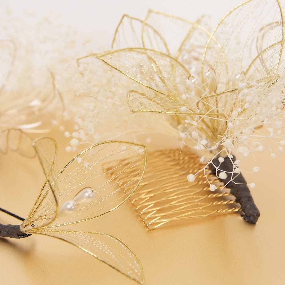 大きい飾りがコーム式、小さい飾りは、Uピン式になっています。