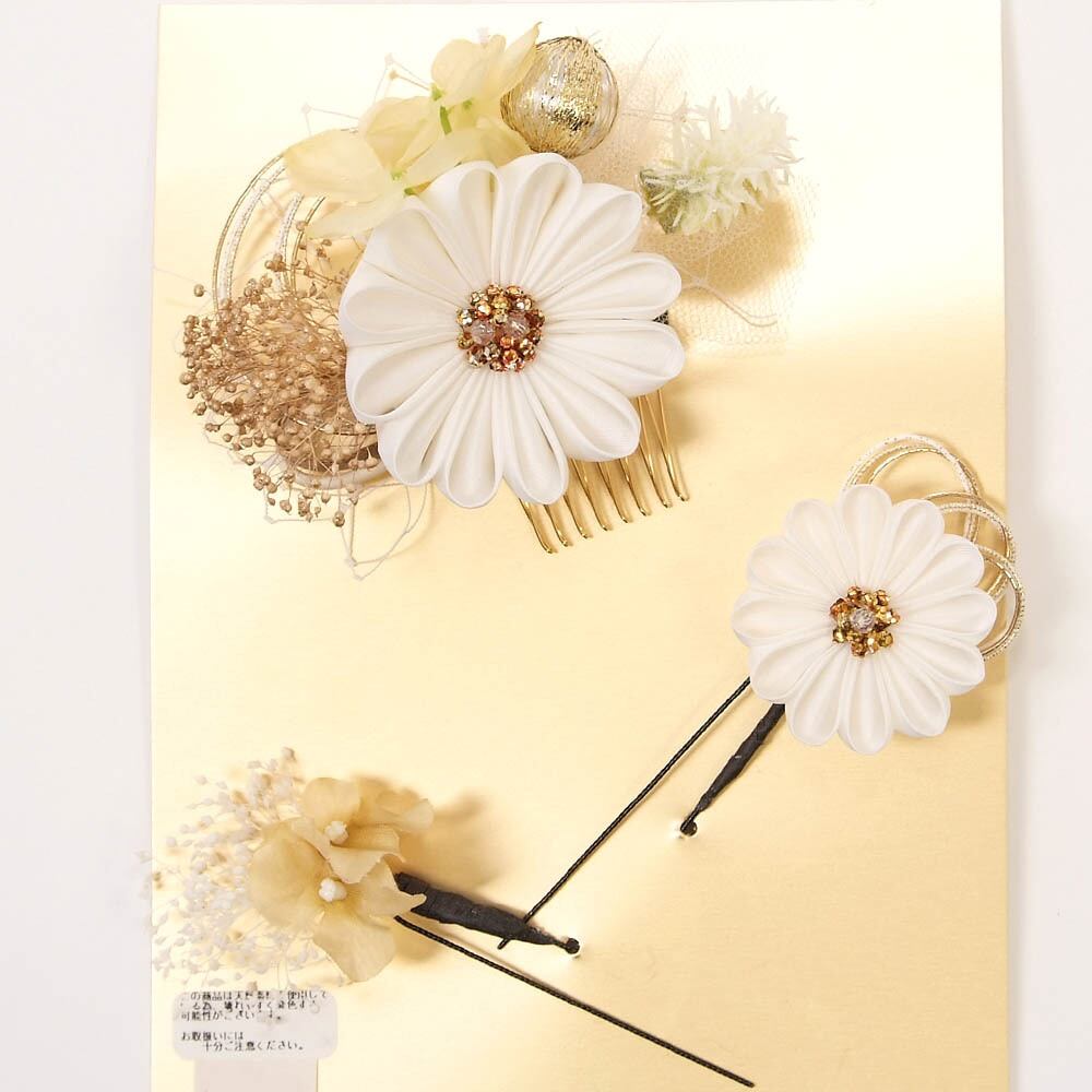 【きもの山喜】髪飾り 振袖 成人式 袴 3個セット シャルマン 水引 つまみ ドライフラワー 可愛い おしゃれ 日本製 白