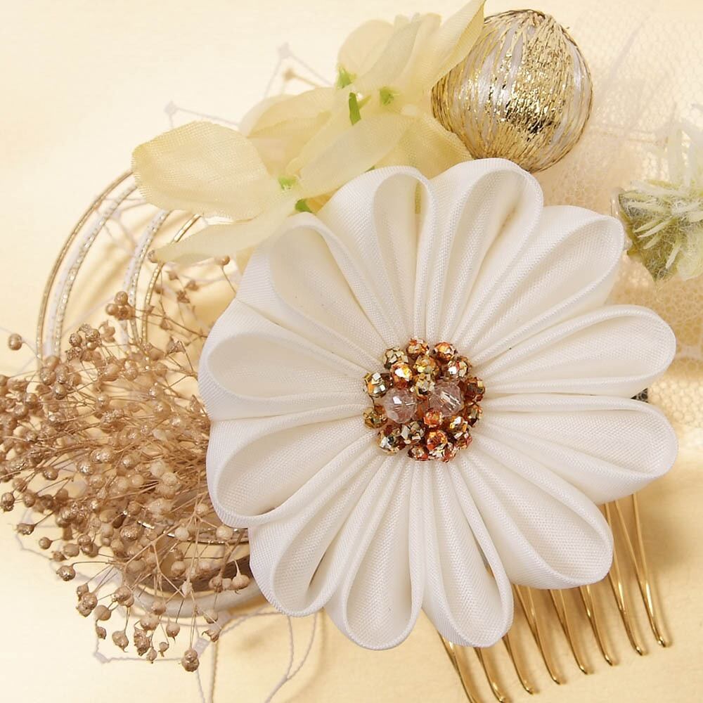 大きい飾りがコーム式、小さい飾りはUピン式になっています。