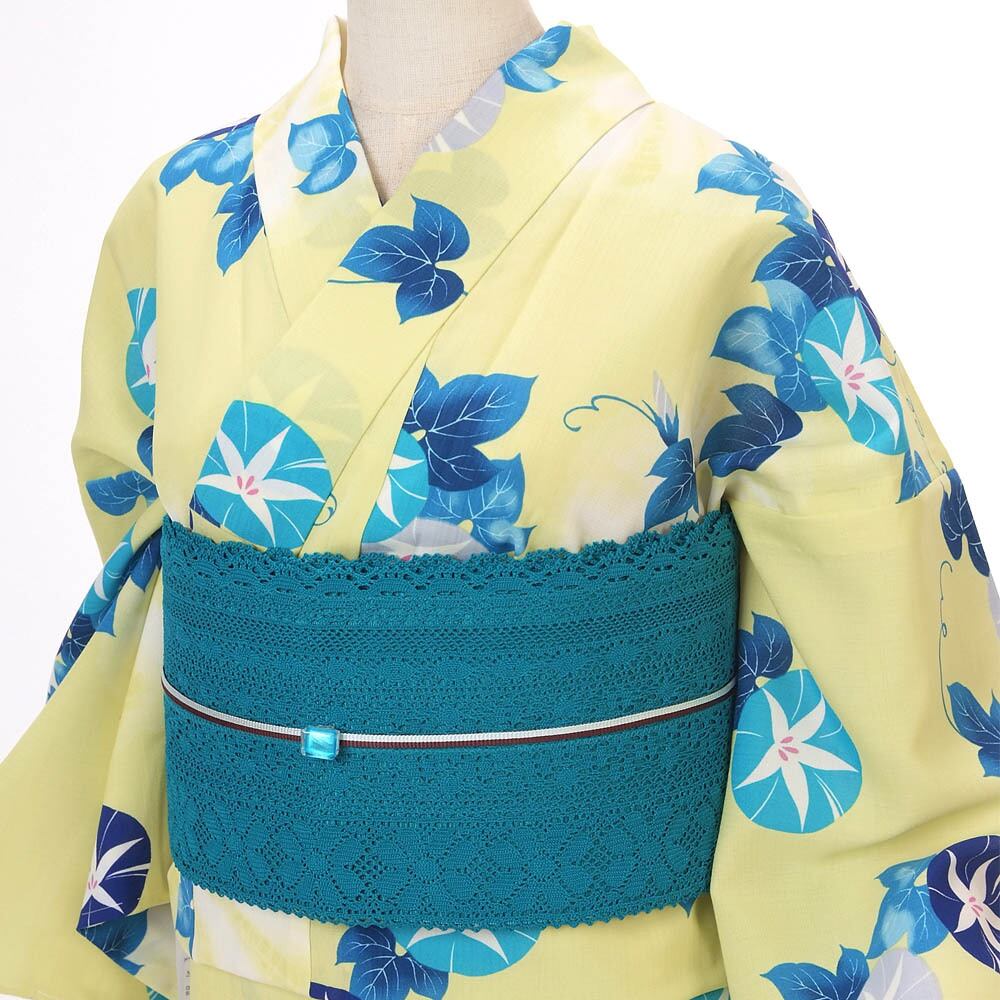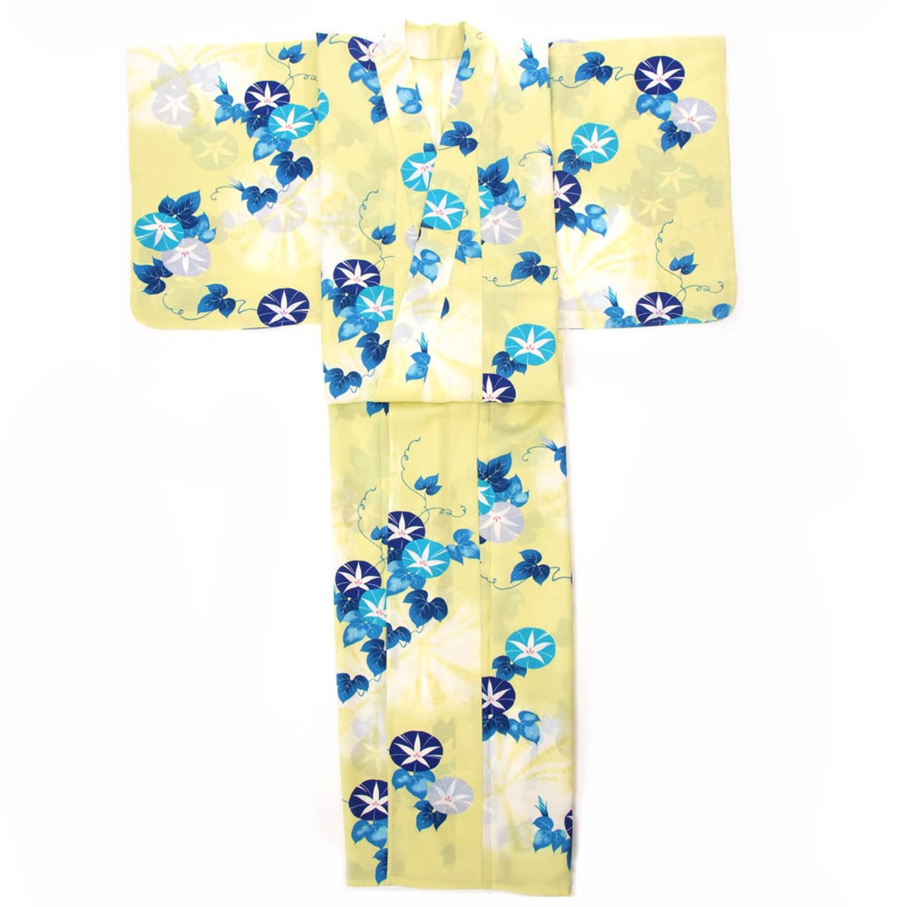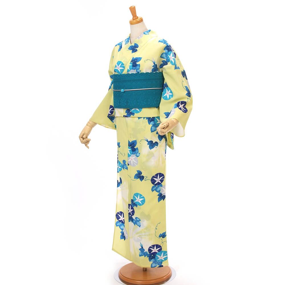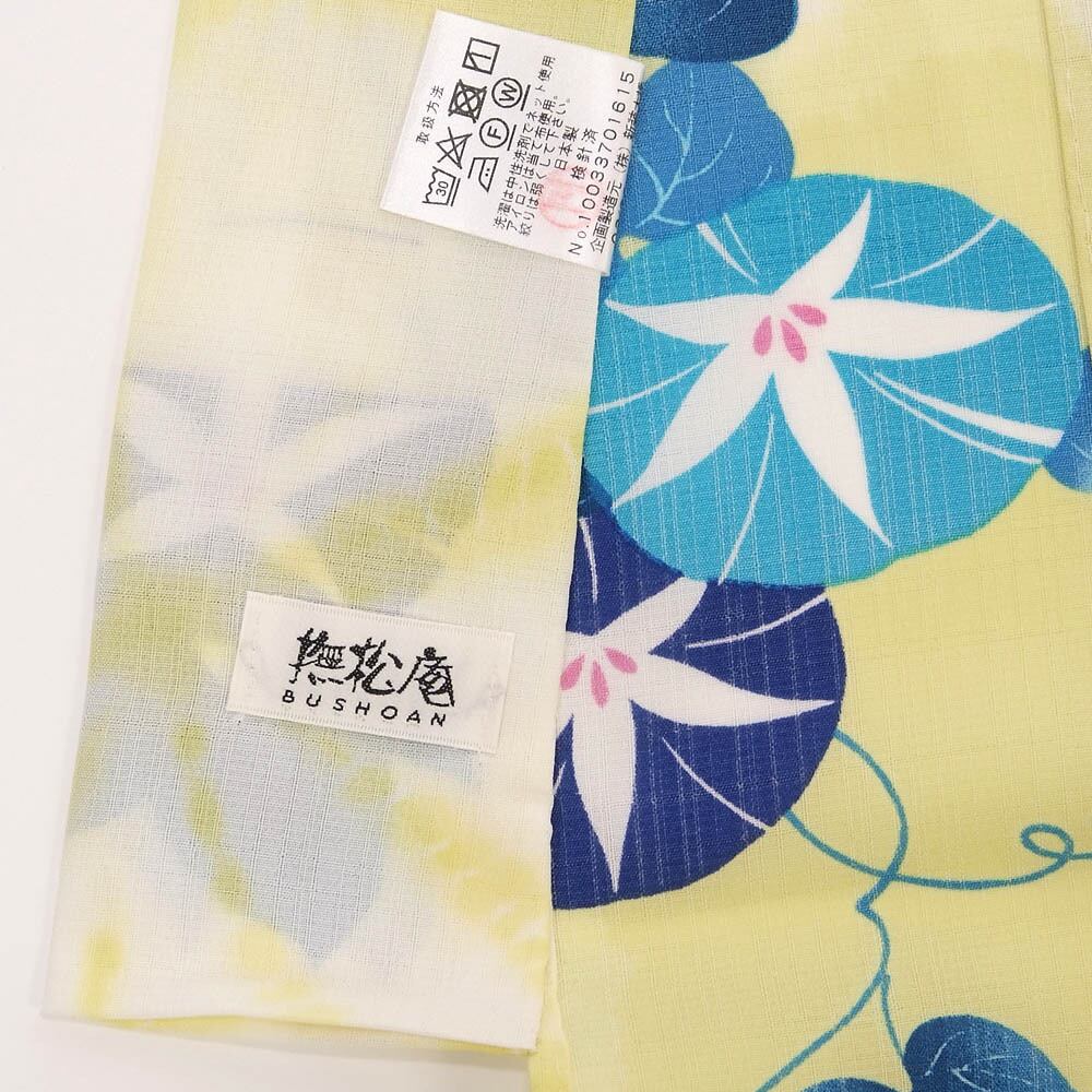 【きもの山喜】浴衣 レディース 撫松庵 ブランド 単品 東レ セオ アルファ さらっと涼しい 日本製 Mサイズ 絞り朝顔 黄色