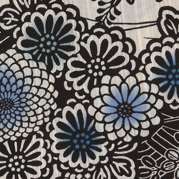 黒系の色々な花や流水の柄が、着物の様な柄行になっていて上品です。