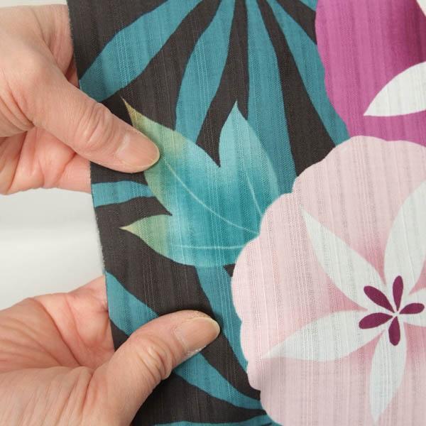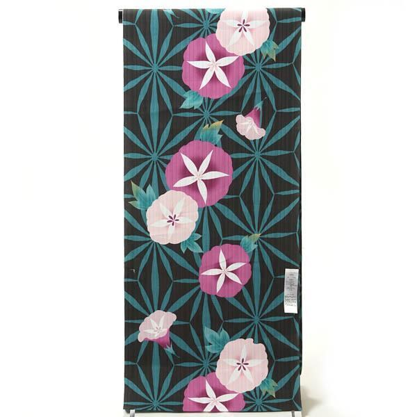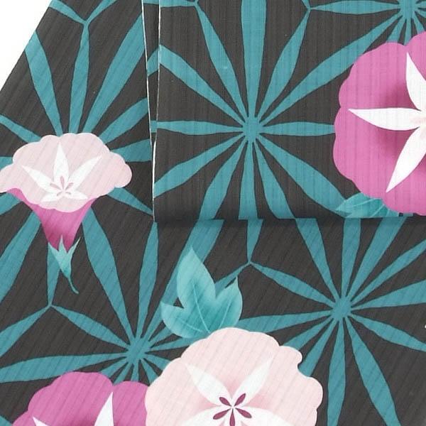 【きもの山喜】浴衣 反物 女性用 ゆかた 変わり織 綿 日本製 朝顔 黒 オプションでお仕立て承ります