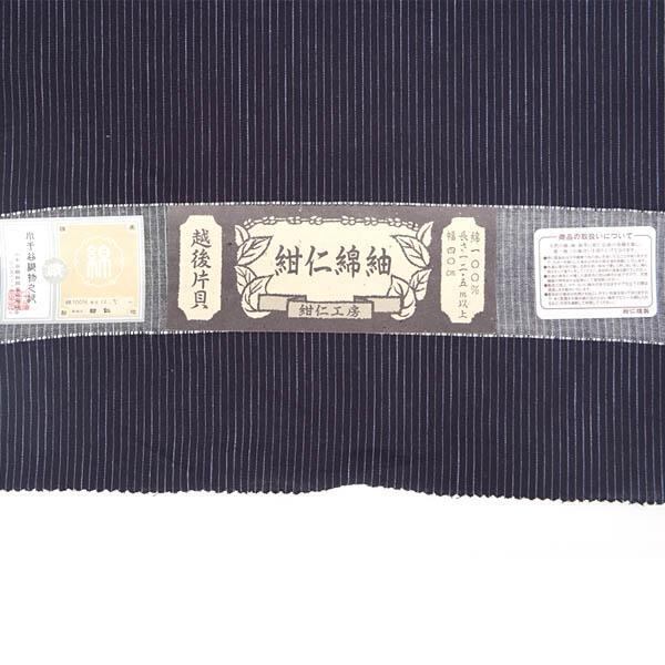 【きもの山喜】木綿着物 片貝木綿 反物 綿100% 3シーズン着用可 カジュアル メンズ可 オプションでお仕立てできます 縞 紺