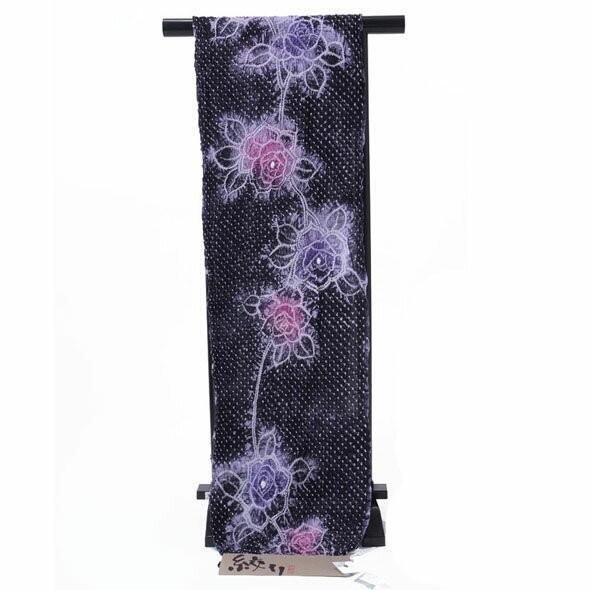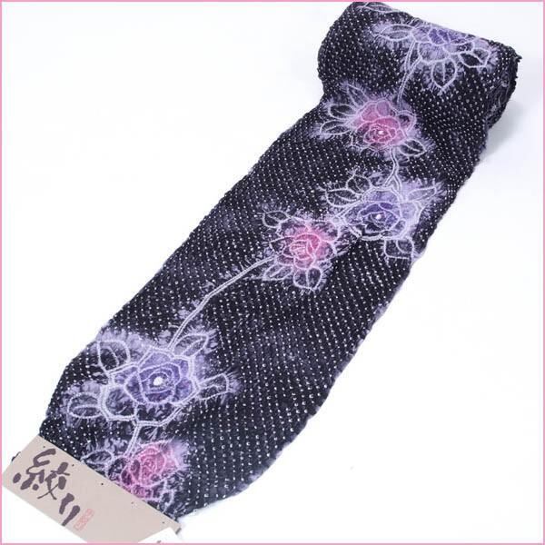 【きもの山喜】浴衣 反物 レディース 伝統工芸 絞り バラ 黒 オプションでお仕立て承ります