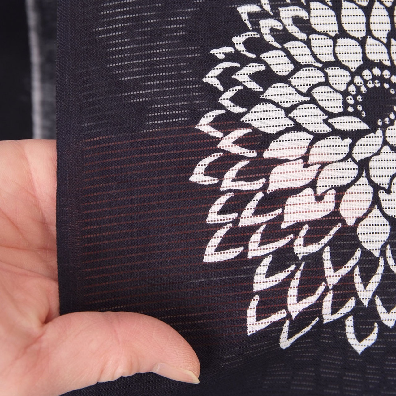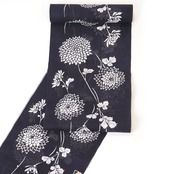 濃紺の地色に菊の花模様が上品に描かれたおしゃれなデザインです。