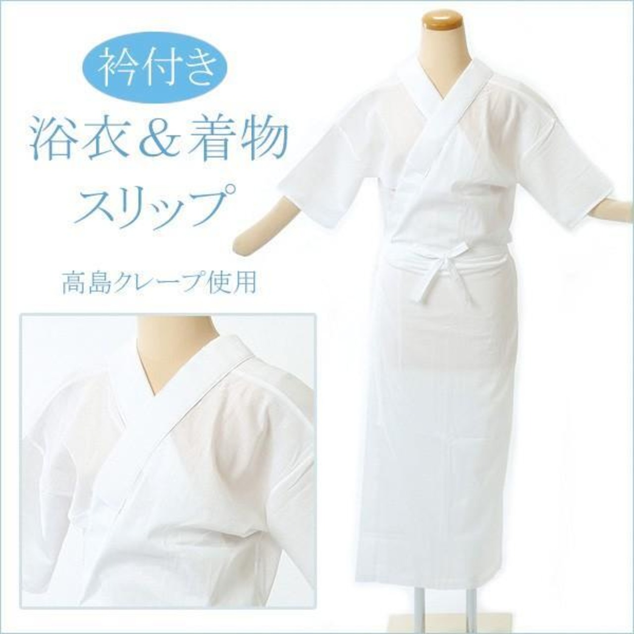 【きもの山喜】衿付き浴衣スリップ 高島クレープ 綿100% 浴衣インナー 半衿付 着物スリップ 夏ワンピース肌着 日本製