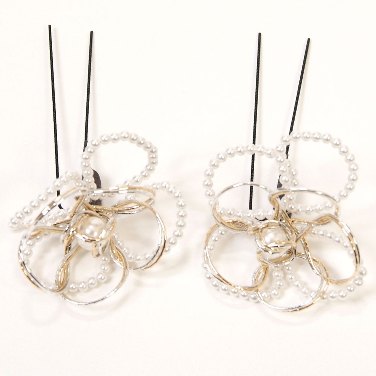 【きもの山喜】髪飾り 振袖 成人式 袴 2個セット Uピン シャルマン 水引 樹脂パール 可愛い おしゃれ 日本製 白