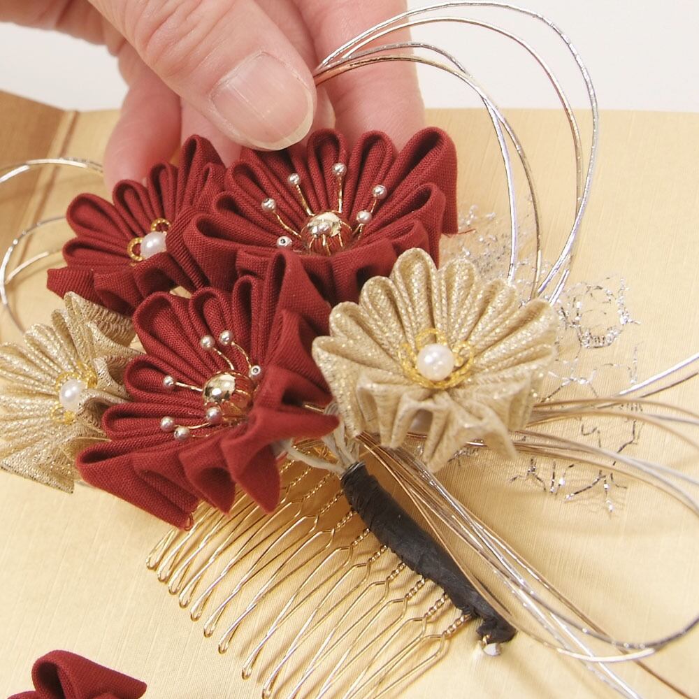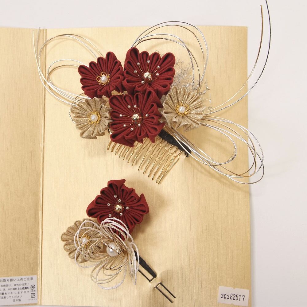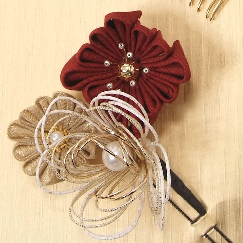 【きもの山喜】髪飾り 振袖 成人式 袴 2個セット 花 つまみ細工 水引 レース 可愛い おしゃれ 日本製 赤