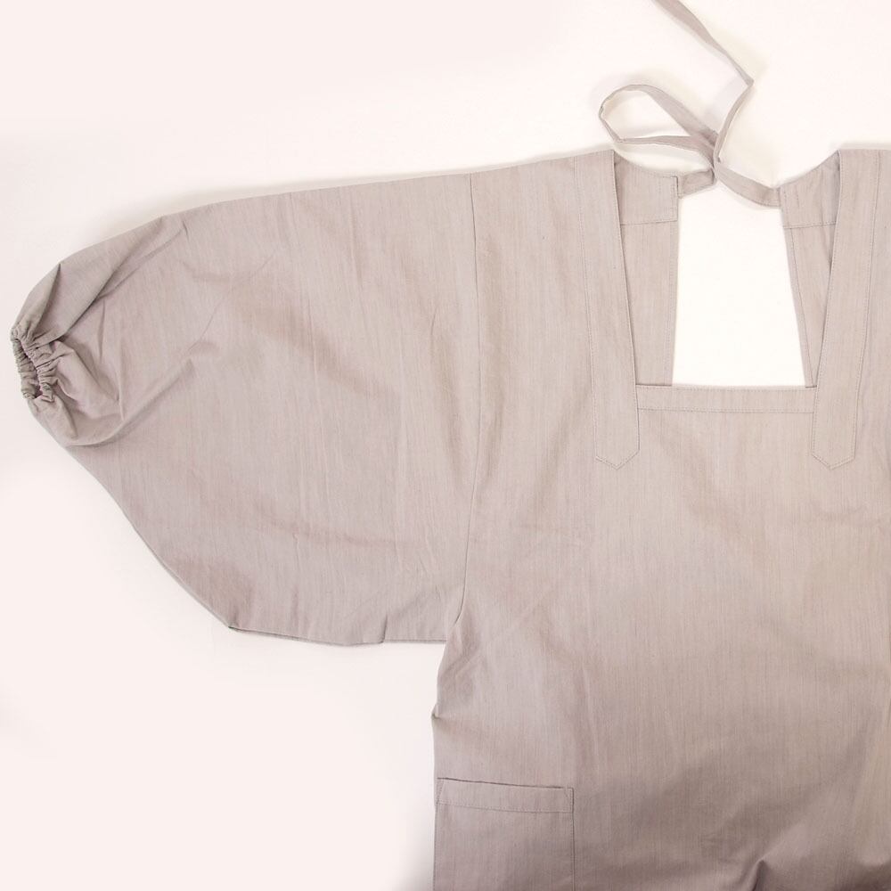 【きもの山喜】割烹着 和装 ロングかっぽう着 水屋着 オリジナル 120cm ロング丈 着物かっぽう 日本の縫製 綿100% おしゃれ 可愛い お茶席 水屋仕事 無地 グレー