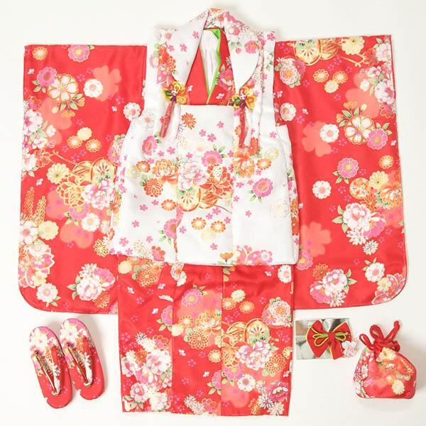 【きもの山喜】七五三 着物 3歳用 被布セット三ッ身 子供 女の子 赤【オプションで半衿付け お直しできます・足袋プレゼント】