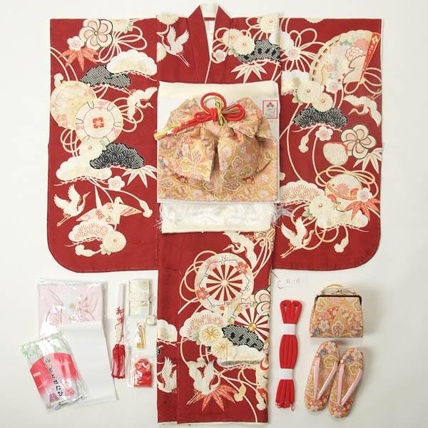 【きもの山喜】七五三 7歳 紅一点 女の子 正絹 着物 四つ身 17点 フルセット 日本製 赤【半衿付け・揚げ加工サービス】
