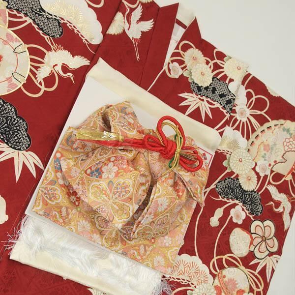 【お色目】着物:赤色系 帯:ピンクベージュ系