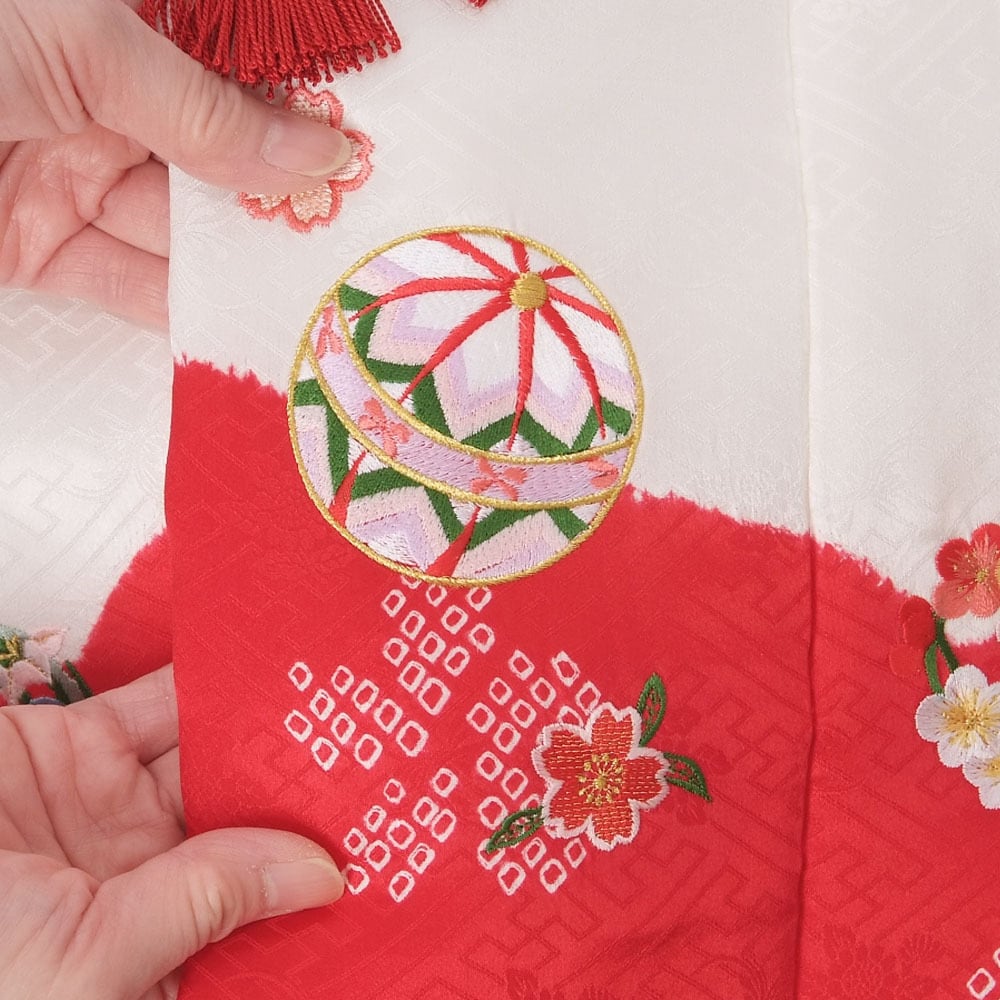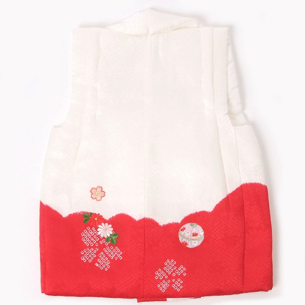 【きもの山喜】七五三 被布 3歳用 女の子 三つ身 被布コート 正絹 まり 花 刺繍 日本製 白 赤