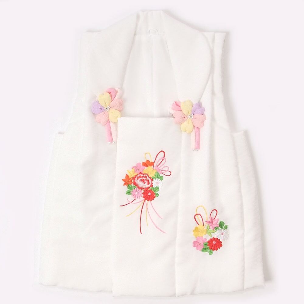 【きもの山喜】七五三 被布 3歳用 女の子 三つ身 被布コート ポリエステル 花 刺繍 日本製 白