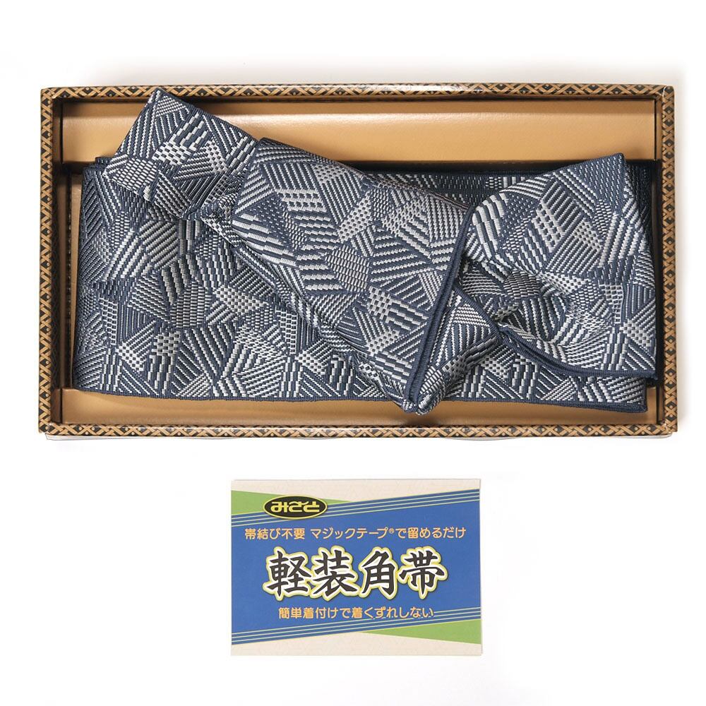 【きもの山喜】角帯 ワンタッチ 本場筑前 博多織 正絹 男帯 マジックテープでとめるだけ 軽装帯 作り帯 着物帯 浴衣帯 日本製 青