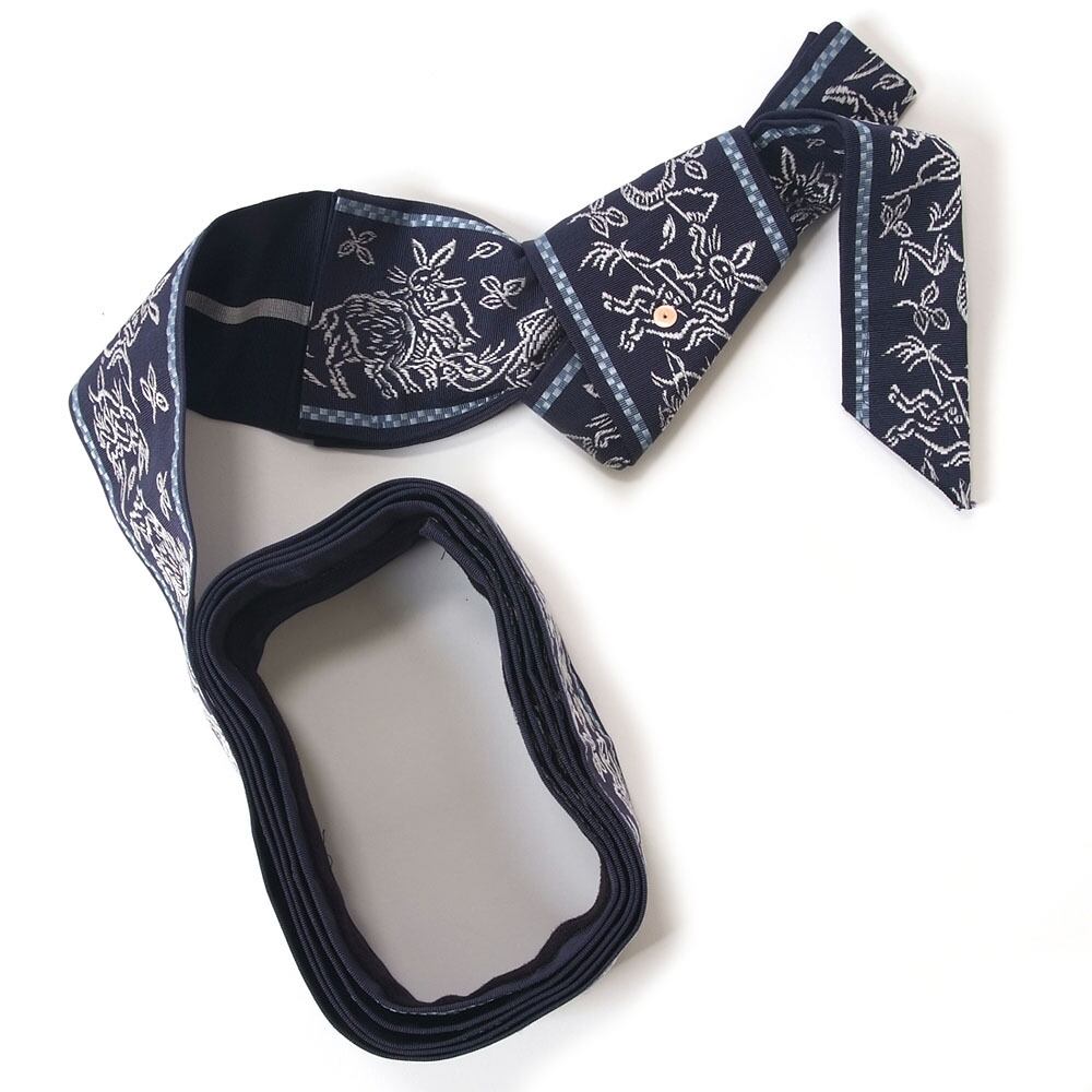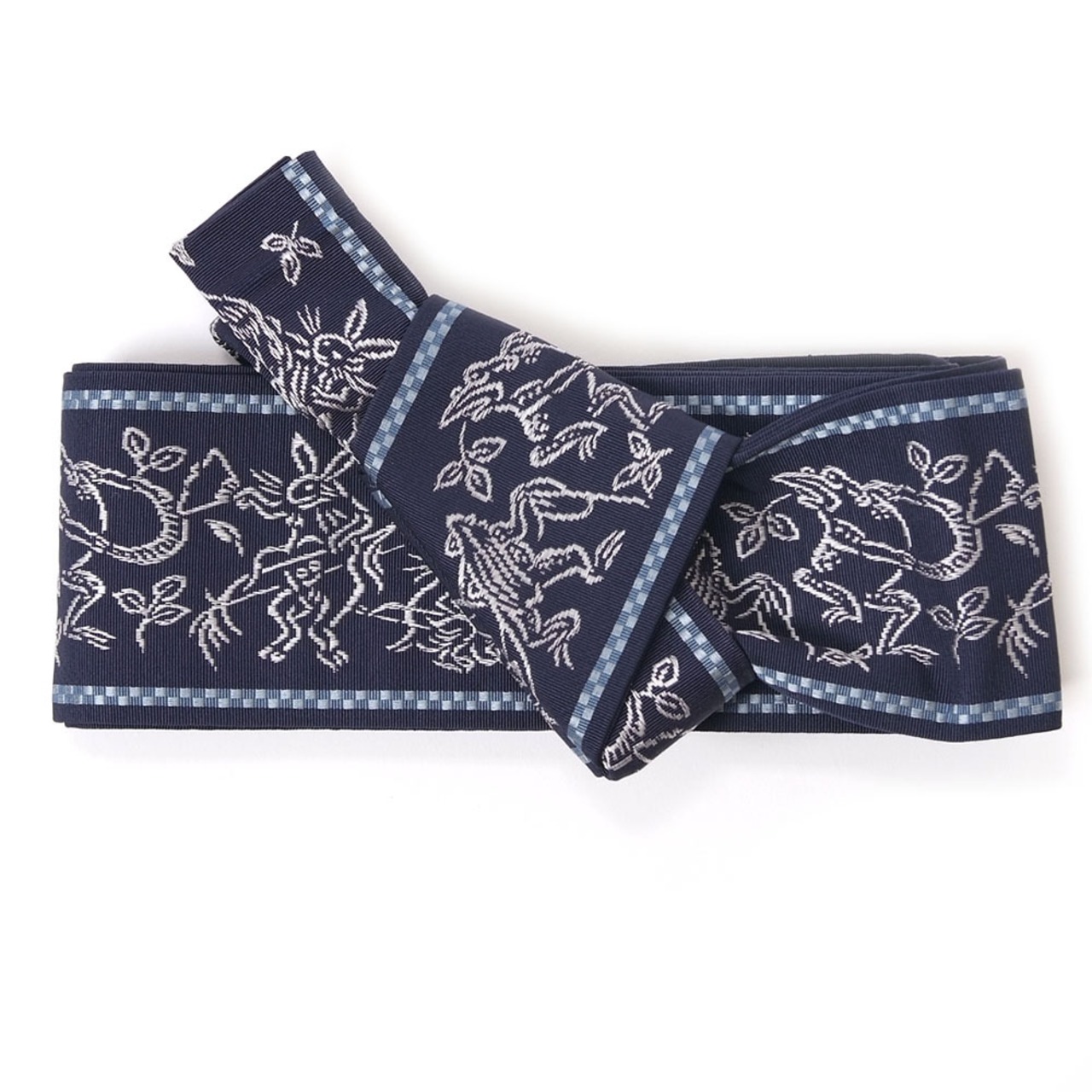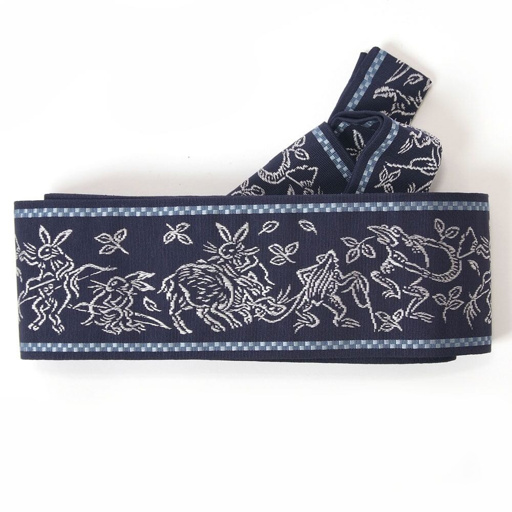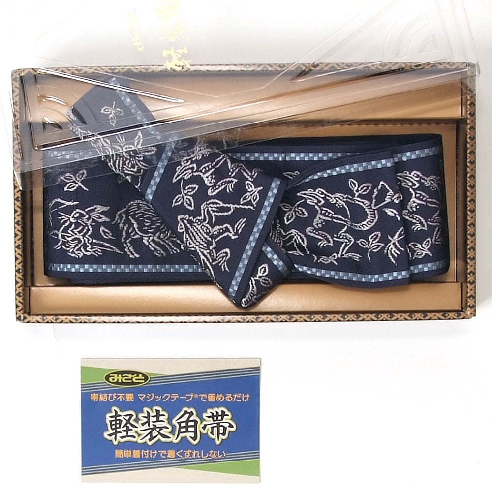 【きもの山喜】角帯 ワンタッチ アウトレット 少難あり 本場筑前 博多織 正絹 男帯 面テープでとめるだけ 軽装帯 作り帯 着物帯 浴衣帯 日本製 鳥獣戯画 紺