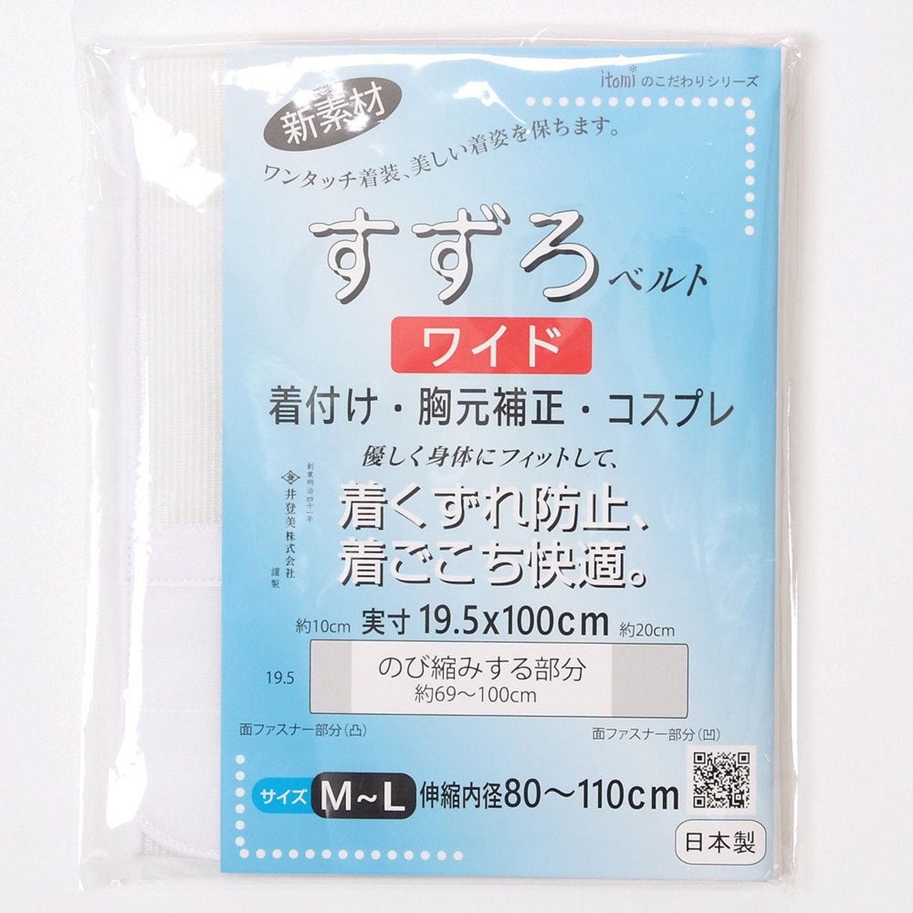 【きもの山喜】すずろベルトワイド M-L 伊達締め マジックベルト メッシュ 幅広 女性用 面ファスナー 通年 夏用 胸元補正 白 日本製