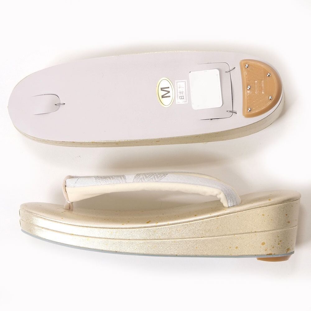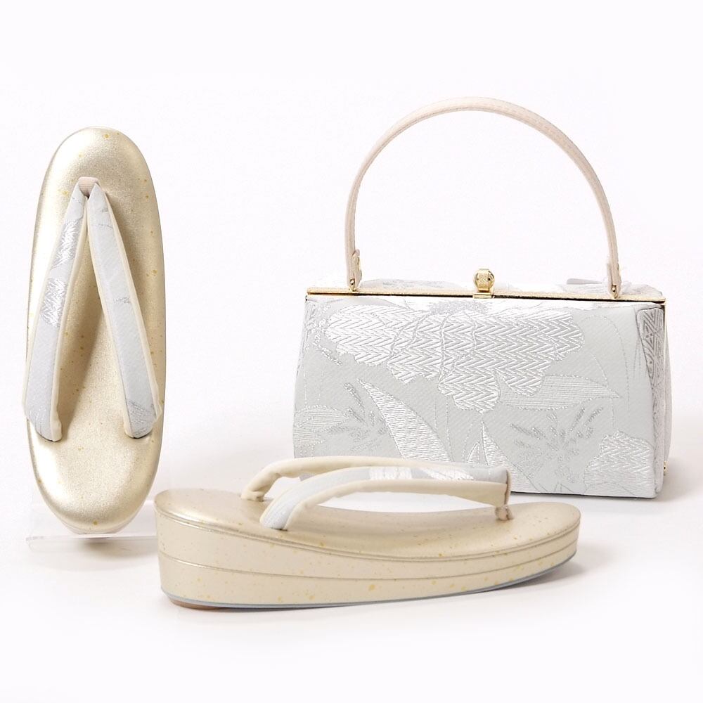【きもの山喜】草履バッグセット Mサイズ 振袖 成人式 卒業袴 織地 和装 着物 おしゃれ 可愛い シンプル 二枚芯草履 日本製 白 シルバー ゴールド