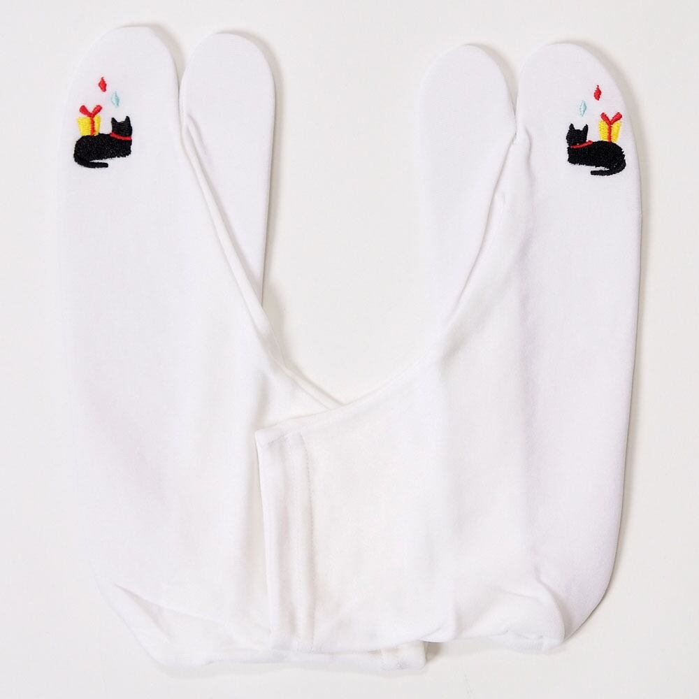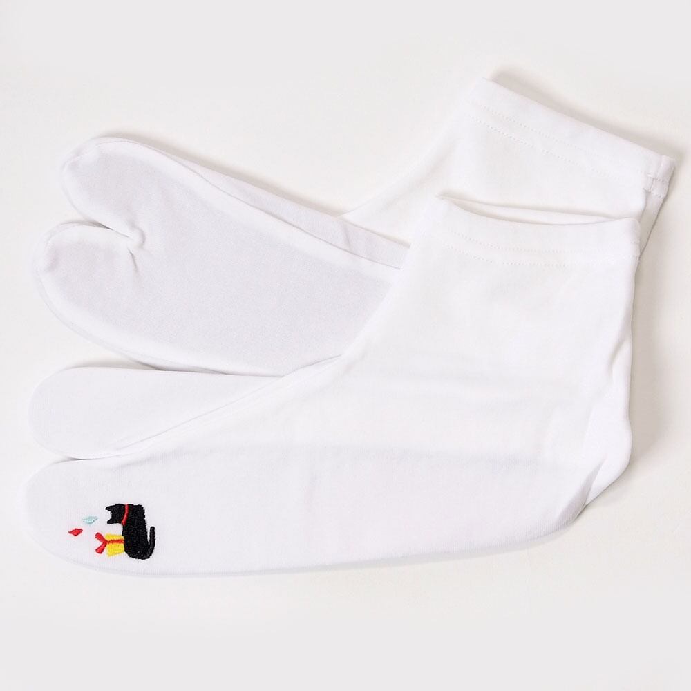 【きもの山喜】足袋 ストレッチ足袋 足袋ソックス 靴下足袋 口ゴム 22.5-24.5 フリーサイズ 猫 刺繍 カジュアル 白