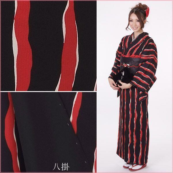 【きもの山喜】小紋 着物 正絹 仕立て上がり きもの道楽 袷 レディース 女性 カジュアル すぐに着れる着物 黒 赤 よろけ縞