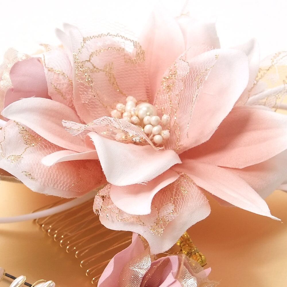 【きもの山喜】髪飾り 振袖 成人式 袴 4個セット Uピン シャルマン 花 レース リボン 可愛い おしゃれ 日本製 ピンク