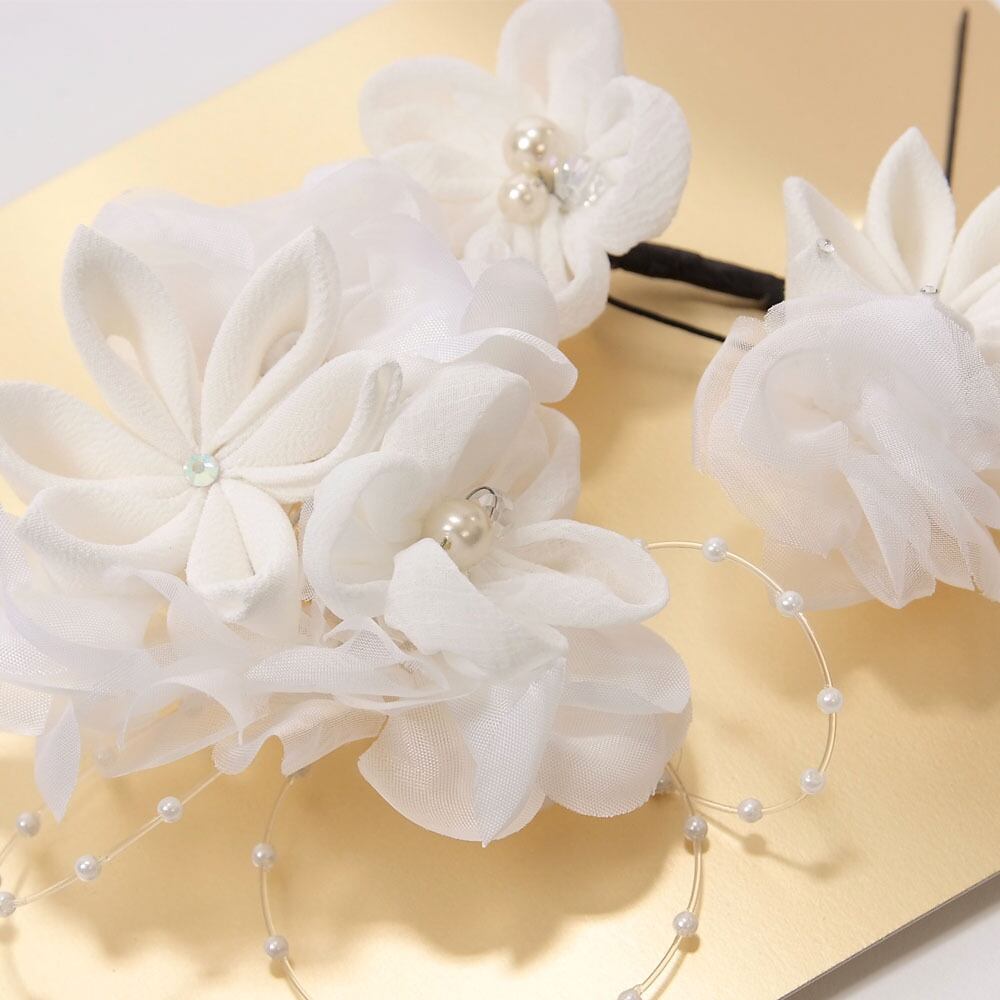 【きもの山喜】髪飾り 振袖 成人式 袴 3個セット Uピン シャルマン 花 シフォン 可愛い おしゃれ 日本製 白