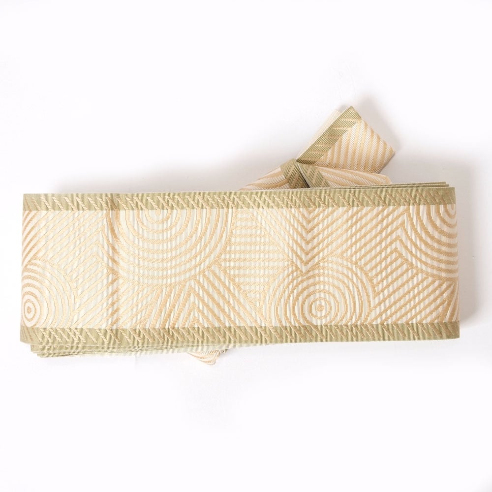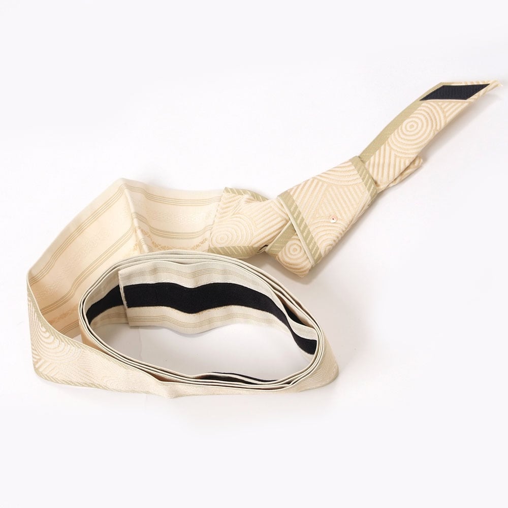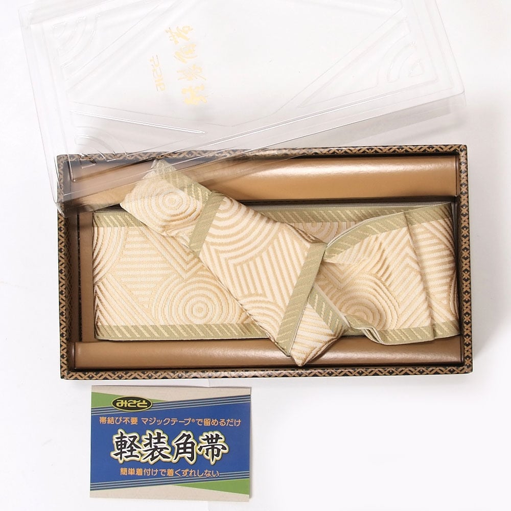【きもの山喜】角帯 ワンタッチ 本場筑前 博多織 正絹 男帯 面ファスナーでとめるだけ 軽装帯 作り帯 着物帯 浴衣帯 日本製 クリーム色