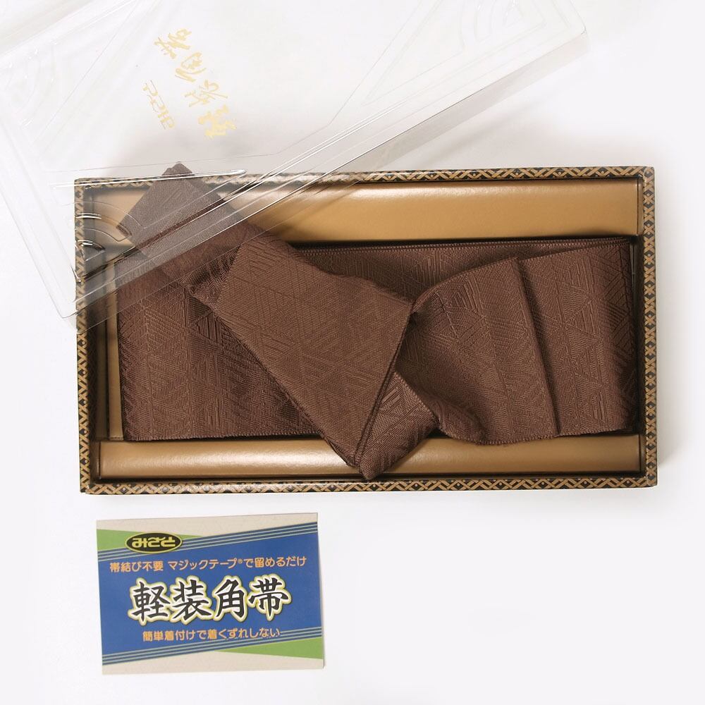 【きもの山喜】角帯 ワンタッチ 本場筑前 博多織 正絹 男帯 面ファスナーでとめるだけ 軽装帯 作り帯 着物帯 浴衣帯 日本製 茶