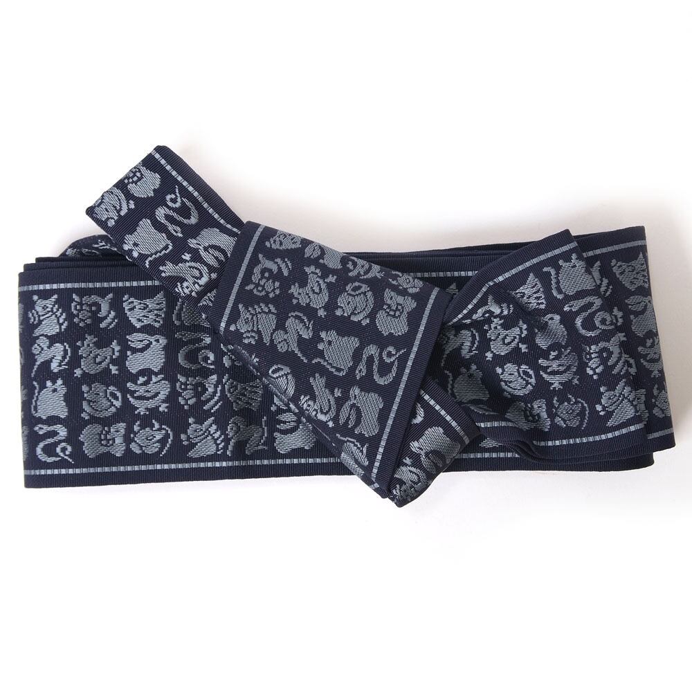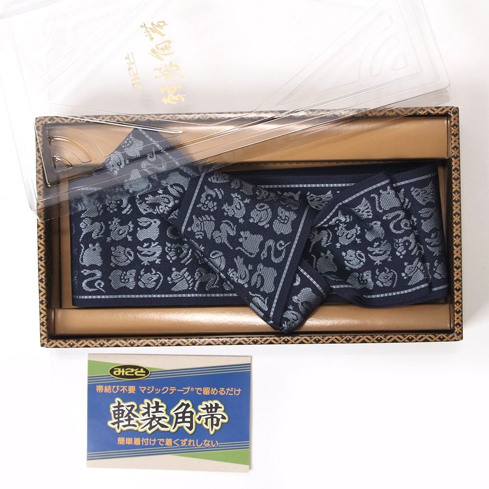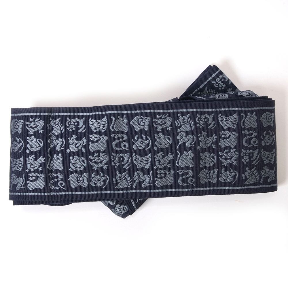 【きもの山喜】角帯 ワンタッチ 本場筑前 博多織 正絹 男帯 面ファスナーでとめるだけ 軽装帯 作り帯 着物帯 浴衣帯 日本製 十二支 紺