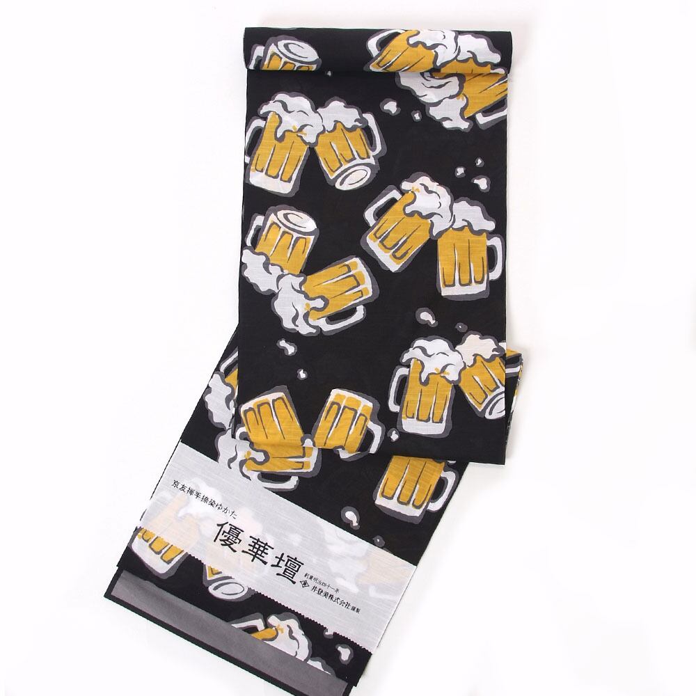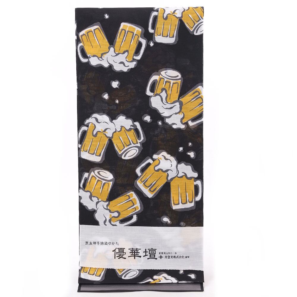 【きもの山喜】浴衣 反物 メンズ ゆかた ワイドサイズ 男 紳士 優華壇 京友禅手捺染 綿 日本製 ビールで乾杯 黒