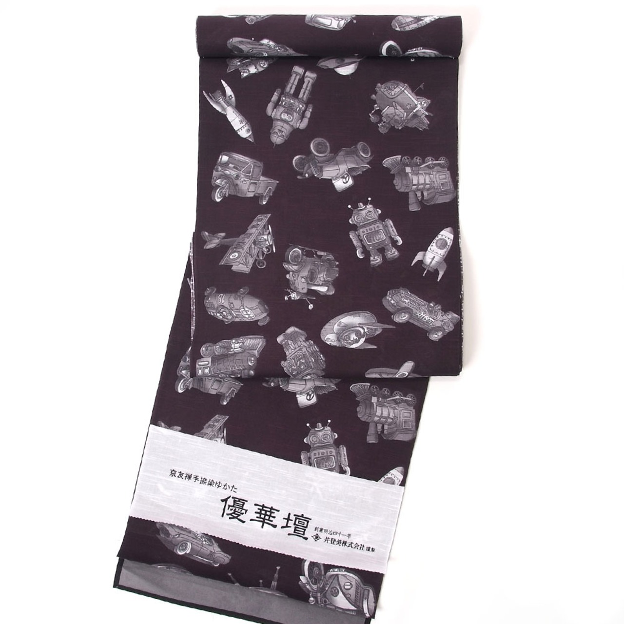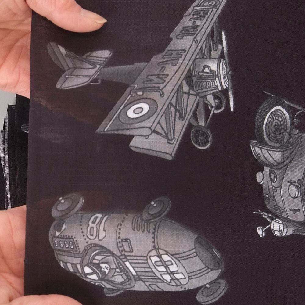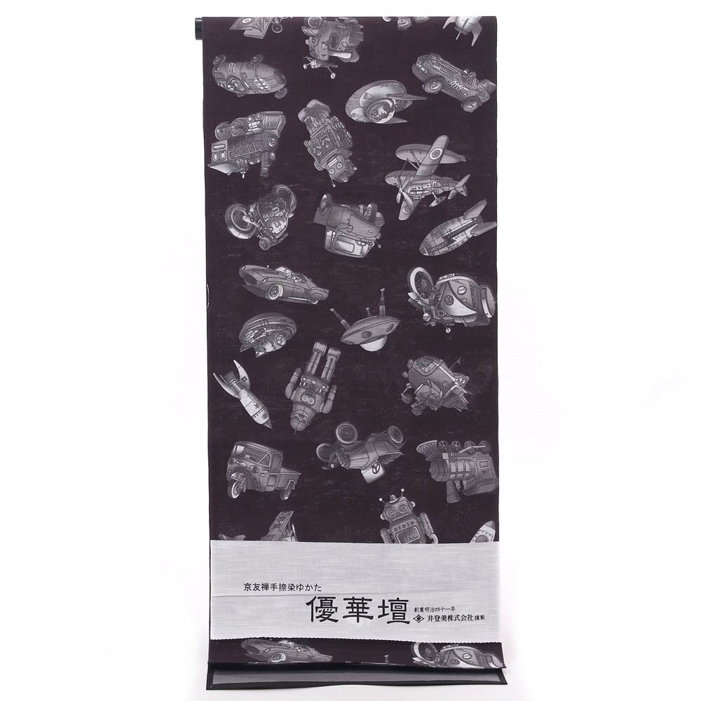 【きもの山喜】浴衣 反物 メンズ ゆかた ワイドサイズ 男 紳士 優華壇 京友禅手捺染 綿 日本製 ブリキ玩具の世界 モノトーン