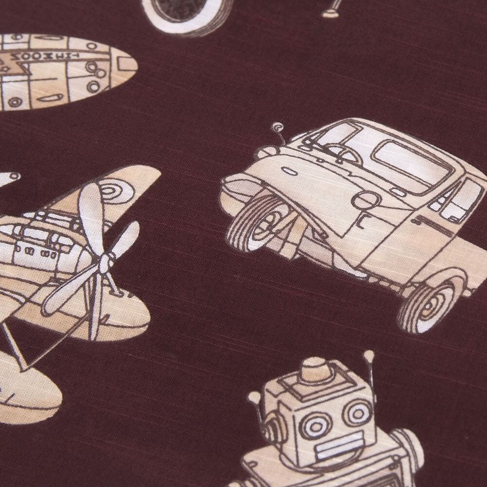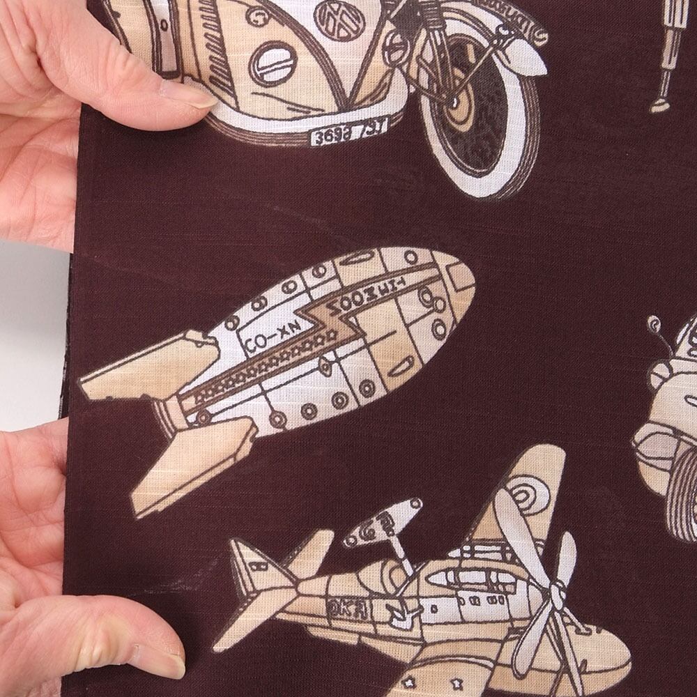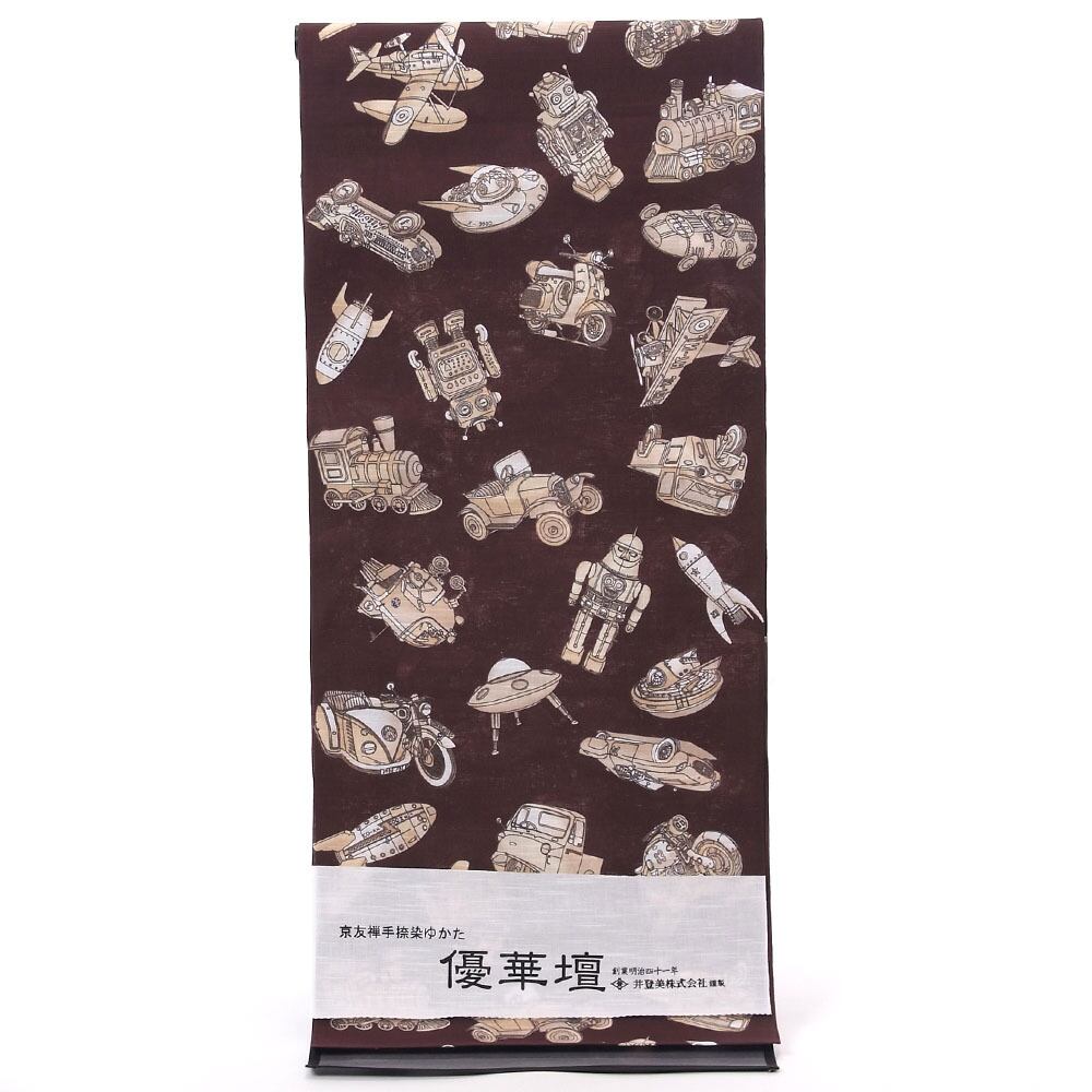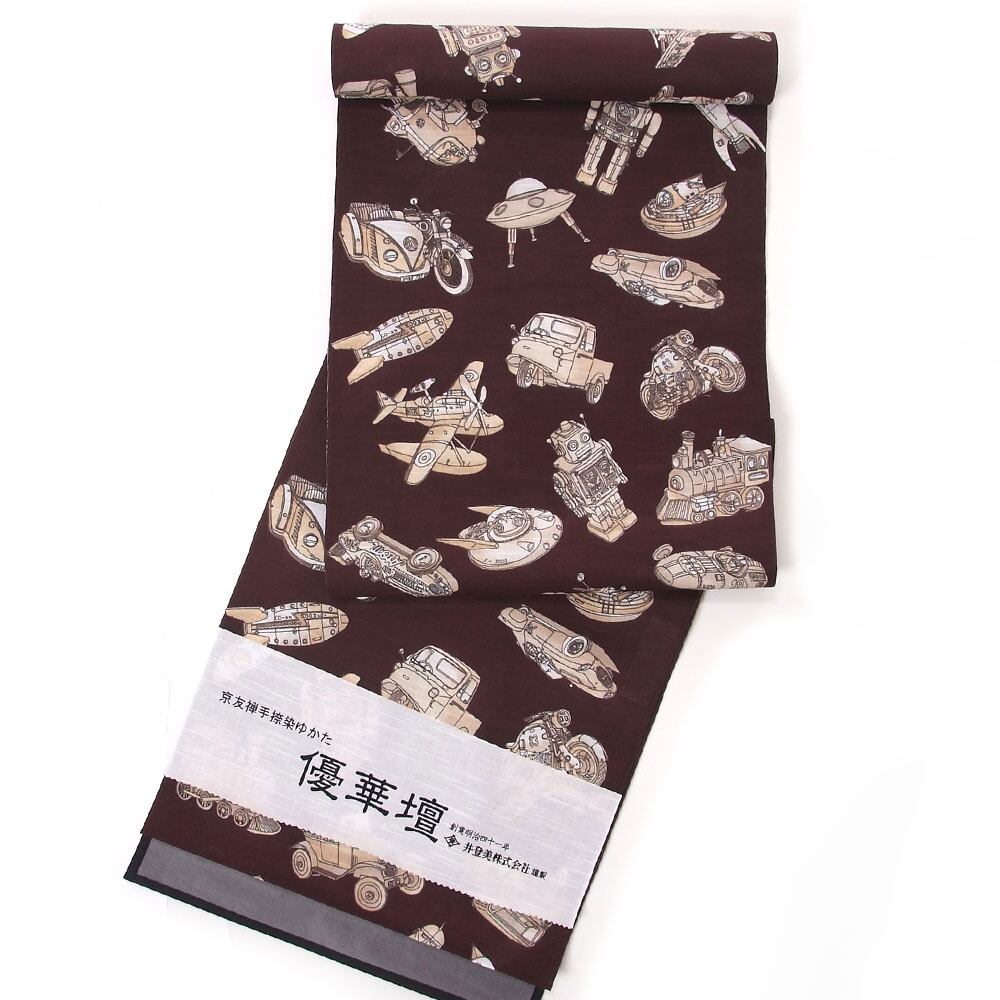 【きもの山喜】浴衣 反物 メンズ ゆかた ワイドサイズ 男 紳士 優華壇 京友禅手捺染 綿 日本製 ブリキ玩具の世界 セピア