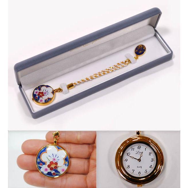 【きもの山喜】懐中時計 京七宝 梅(青) 四季彩シリーズ クオーツ セイコー製 チャーム付き 化粧箱入り【記念品・お祝い・ギフトに最適】【お取り寄せ商品】