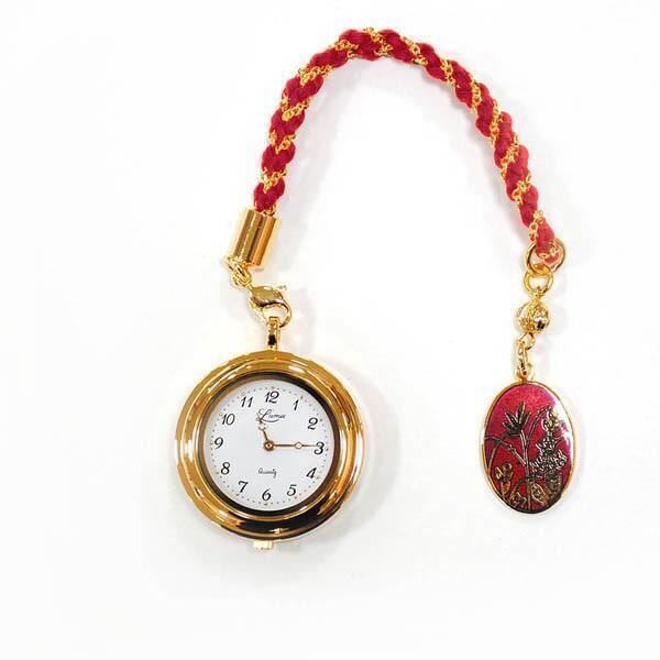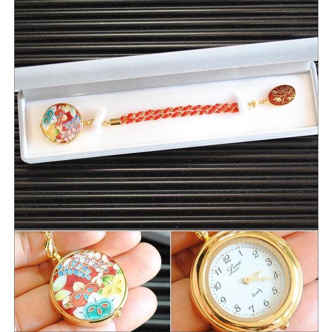 【きもの山喜】懐中時計 京七宝 橘(赤) 四季彩シリーズ クオーツ セイコー製 チャーム付き 化粧箱入り【記念品・お祝い・ギフトに最適】【お取り寄せ商品】