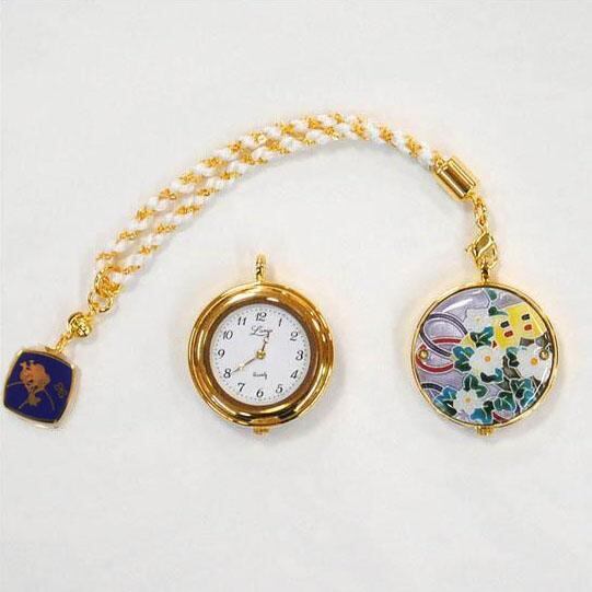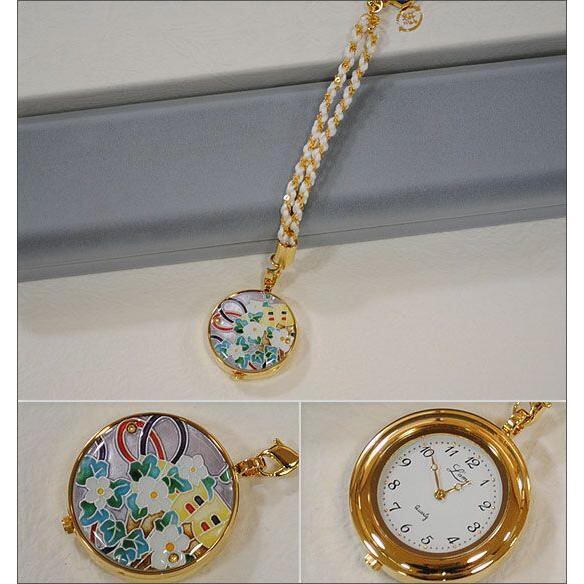 【きもの山喜】懐中時計 京七宝 夕顔(紫)源氏物語シリーズ クオーツ セイコー製 チャーム付き 化粧箱入り【記念品・お祝い・ギフトに最適】【お取り寄せ商品】