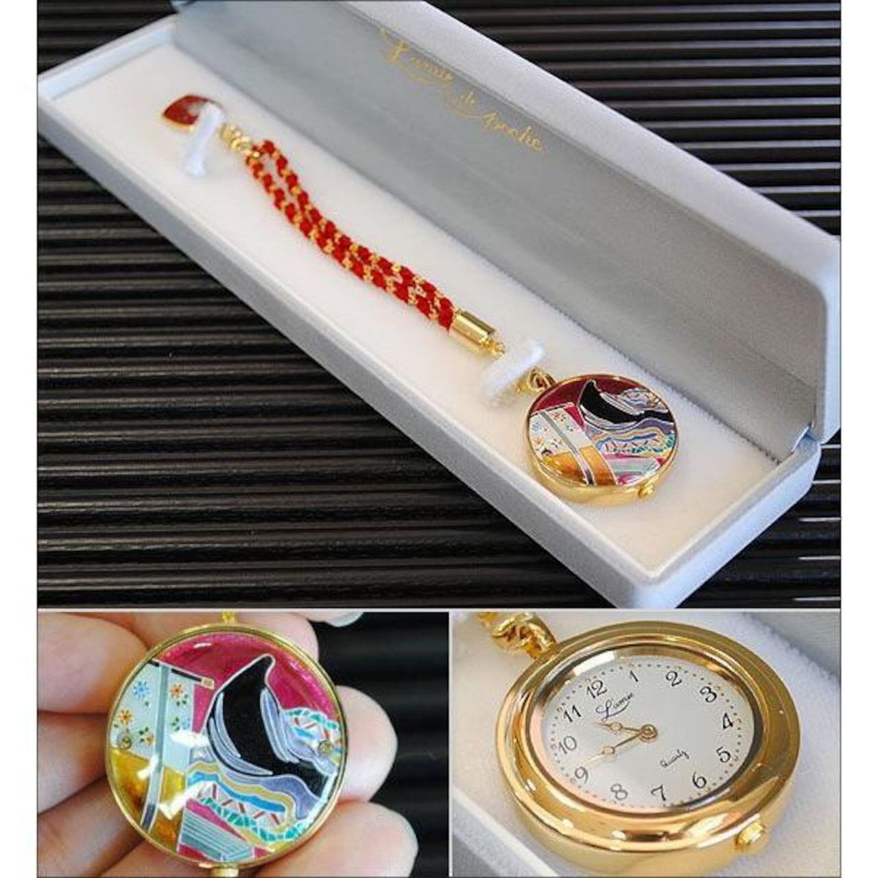 【きもの山喜】懐中時計 京七宝 明石(赤)源氏物語シリーズ クオーツ セイコー製 チャーム付き 化粧箱入り【記念品・お祝い・ギフトに最適】【お取り寄せ商品】