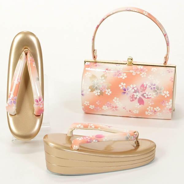 【きもの山喜】草履バッグセット 振袖 Sサイズ 小さいサイズ 高め台 成人式 卒業袴 和装 着物 可愛い 日本製 桜 オレンジ