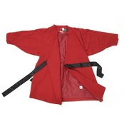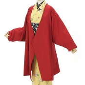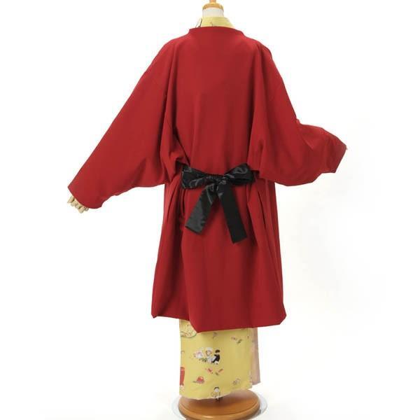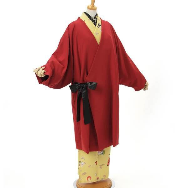 【きもの山喜】撫松庵 和装コート 赤 Mサイズ ストレッチ サテンリボン付き 袖口リブニット