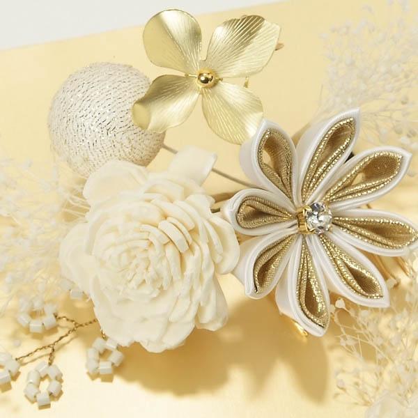 【きもの山喜】髪飾り 振袖 成人式 袴 2個セット シャルマン かんざし つまみ 可愛い おしゃれ 日本製 白